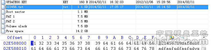U盘文件误删除了,想通过数据恢复软件修复,发现恢复回来的文件是损坏的。用winhex打开一看基本都是0,顿时对数据恢复软件很失望!想自己来恢复,同时一探究竟! 说 明: 操作系统:win7 旗舰版 64位 U 盘:16G 所有地址均指物理地址 注意winhex软件与物理地址的相对性 1.0 文件的位置确定 1.1 引导扇区(DBR) 图1 这是我的U盘引导扇区截图,有用的数据均做颜色标记。 黑色(0x0B 0x0C) :0x0200 (每个扇区512字节) 绿色(0x0D) :0x10 (一个簇包含16个扇区,既512 * 16 =8096) 红色(0x0E 0x0F) :0x08BE(2238,保留扇区大小) 粉色(0x20~23) :0x01DD7FFF(31293439,扇区总数) 紫色(0x24~27) :0x00003BA1(15265,FAT表所占用扇区数) 黄色(0x2c~2F) :0x00000002(2,根目录所在第一个簇的簇号) DBR具体参数说明:http://www.inhdd.com/1603448.html 图2 我们需要确定数据区的起始地址 = 橙色 + 绿色 + 黄色 绿色和黄色的地址 = (0x08BE + 0x3BA1 * 2 )* 512 = 0x1000000 橙色 = 0x0400000 数据区的起始地址 = 0x01400000 这个地址也是根目录所在的位置 1.2 根目录文件查找 为了便于分析,这里专门在根目录下建了一个123456.txt的文件,跳转到0x01400000位置 图3 红色是文件名称 绿色是文件的存储簇号(0x00016AC6) 文件的位置存储内容如下图: 图4 1.3FAT表 图片中红色方框即为123456.txt文件存储的位置。 FAT表的起始地址为:0x000117C00 123456.txt存储地址为起始地址+偏移地址 0x000117C00 + 0x00016AC6 *4 = 0x0172718 图5 2.0 删除文件 现在人为删除123456.txt文件,然后来对比根目录和FAT表的变化。 首先看一下根目录: 图6 和图3对比会发现,红色和绿色都改变了,变化的数据标为蓝色。我们知道绿色部分为文件存储的起始簇,这个数据变化了,那么恢复文件的可能性就比较难了。我们再去看看FAT表做了哪些修改。 图7 和图5对比,发现原来的结束簇标志被清除了,变为0. 最后我们去看看文件数据是否也删除了! (0x00016AC6-0x02) * 16 * 512 = 0x2D588000 公式说明: 0x00016AC6,簇的位置 0x2,簇从3开始有效 16 ,每个簇16个扇区 512 每个扇区512字节 这个地址是基于数据区的起始地址0x01400000 所以123456.txt实际地址 = 0x01400000 +0x2D588000 = 0x02E588000 图8 3.0总结 根据分析发现和实际测试,发现电脑的删除操作清除了FAT表的簇号和目录的起始簇地址高16位,但是文件的实际数据还是存储在U盘当中,当然删除后再次写入除外。所以当起始簇有在高16位的文件,软件恢复的可能性不大,当起始簇只有低16位的,恢复起来比较容易。 |